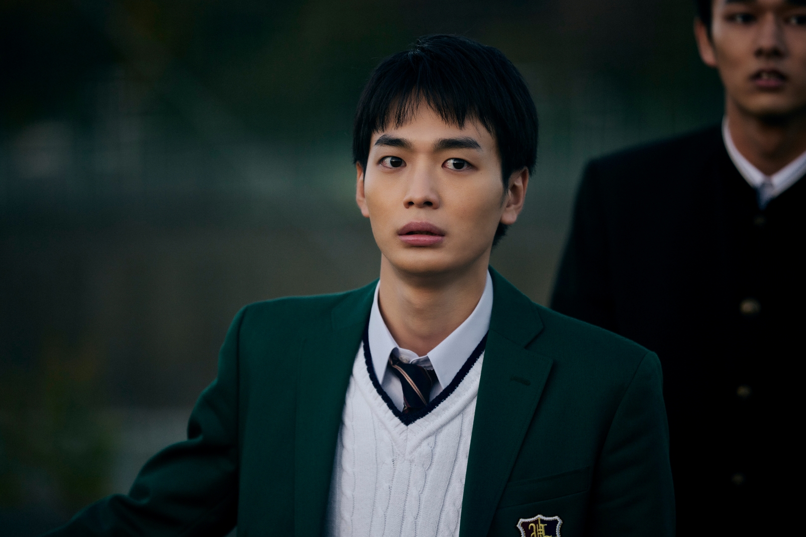 そして、愛のクラスメイトであり、海外帰りで日本の学校の協調性を重んじる集団行動に馴染めない転向し・優を演じる青木柚、不適な笑みを浮かべ集団を導く校長を演じるピエール瀧。